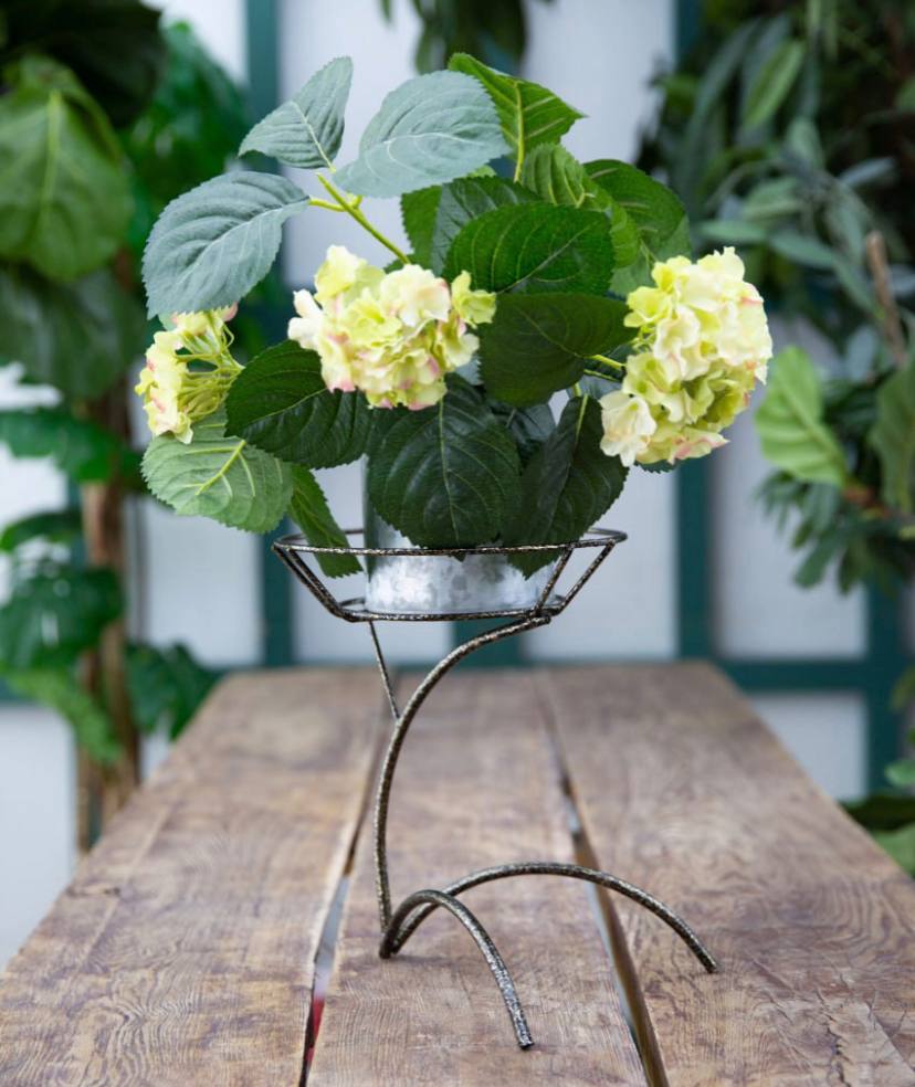 Все подставки окрашены порошковой краской и не боятся воды. Наши подставки могут быть декорированы дополнительными элементам, например, листочками.